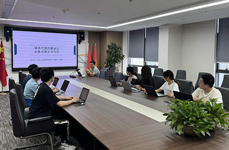 07-22/2025汉武动态|熊真平律师为中南财经政法大学法学院实习生讲授诉讼法律文书写作专题…7月18日下午,高级合伙人熊真平律师为中南财经政法大学法学院暑期实习生在律所会议室举办了题为《律师代理民事诉讼必备法律文书写作》专题培训。法学院经济法专业2024级硕士研究生薛凯文,法学专业2023级本科生李君、张可晗、周政廷、廖煦文、秦雨轩、庞智丹共7名同学参加了本次法律文书写作专题培训。培训开始,熊真平…了解更多