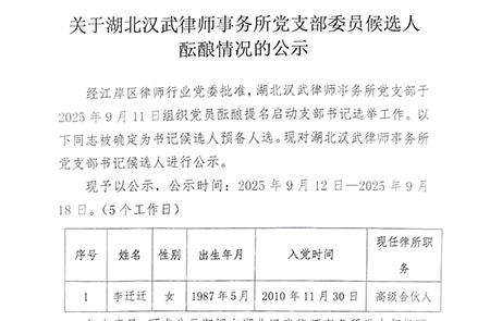 关于湖北汉武律师事务所党支部委员候选人酝酿情况的公示